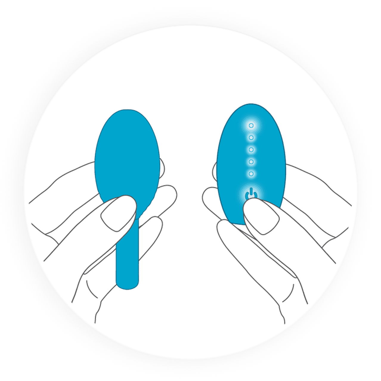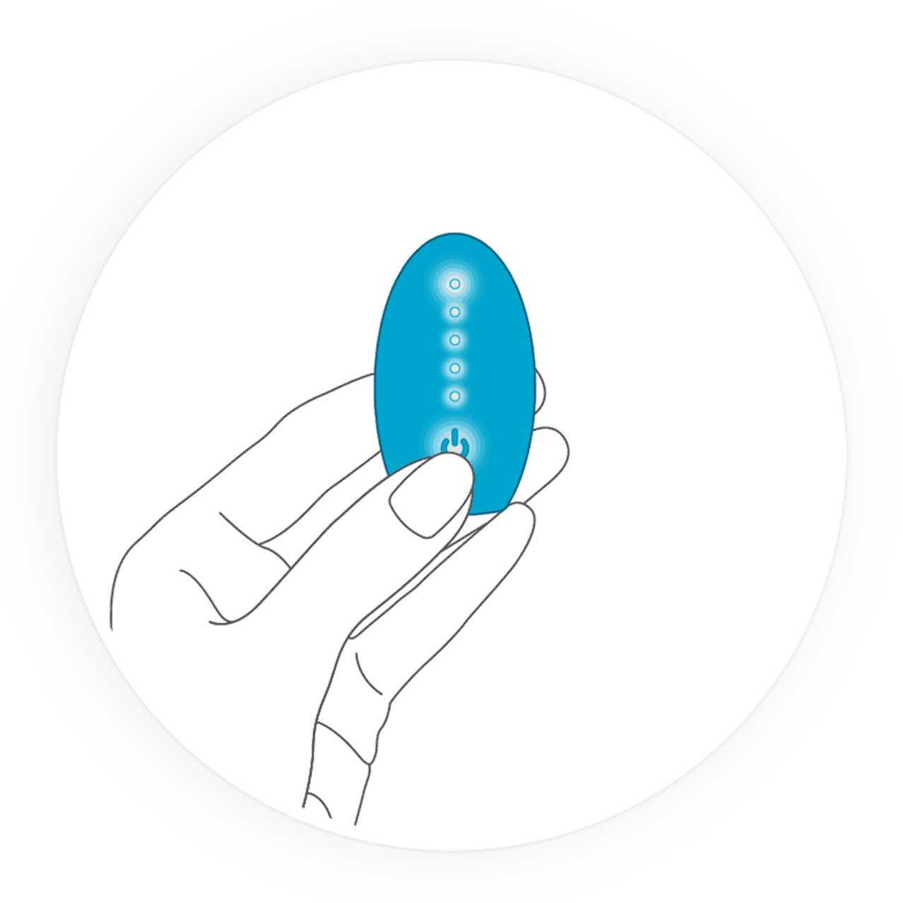 Once the product is inserted, on, and in training mode, perform your pelvic exercises. If the exercises are performed correctly, the indicator lights on the remote will illuminate. The stronger the squeeze, the more lights will illuminate.