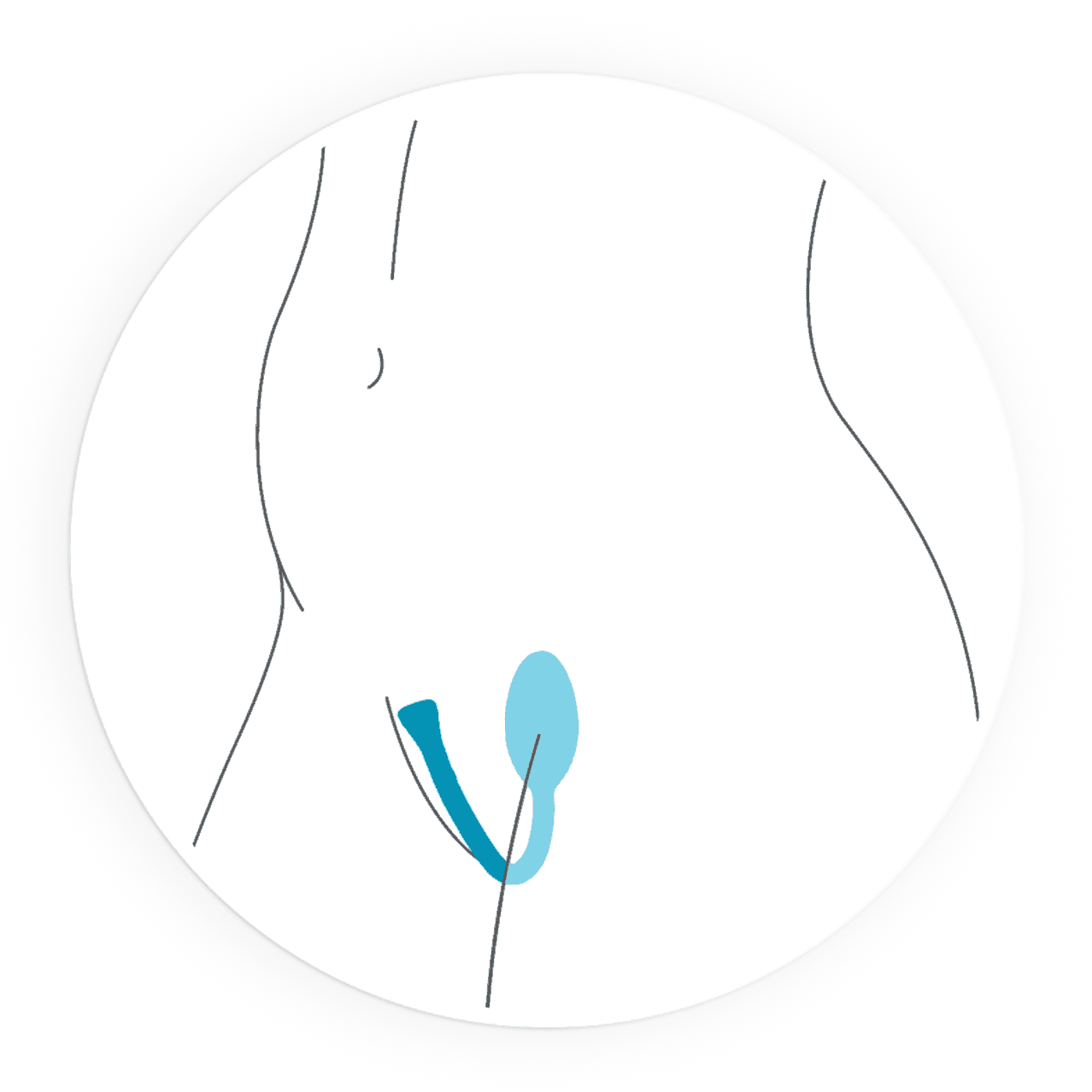 Insert the trainer by gently sliding the larger, rounded end into the vagina until it sits comfortably. The tail of the trainer should remain outside the body, curling up towards the belly button.